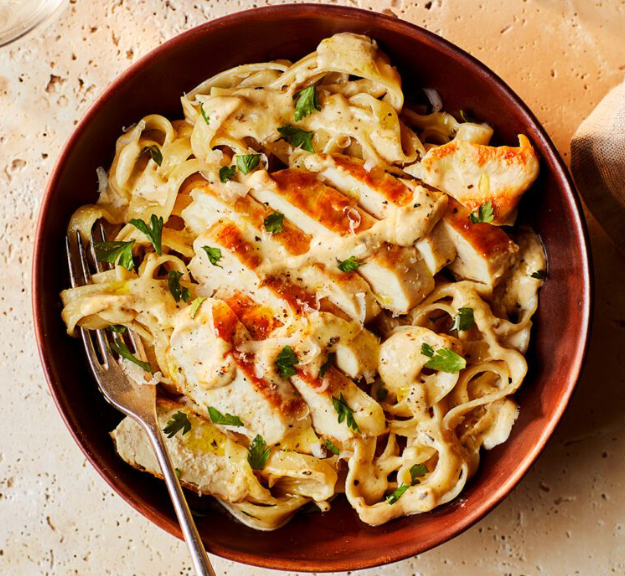 Pasta Ayam Alfredo yang Lembut dan Kaya Rasa Dengan tekstur yang lembut dan rasa yang kaya, pasta ayam Alfredo ini adalah hidangan Italia-Amerika yang memanjakan lidah. Sentuhan aroma bawang putih dan rempah kering membuat setiap suapan terasa menggoda. Ayam yang dipanggang dengan mentega disajikan bersama pasta fettucine dalam saus krim…